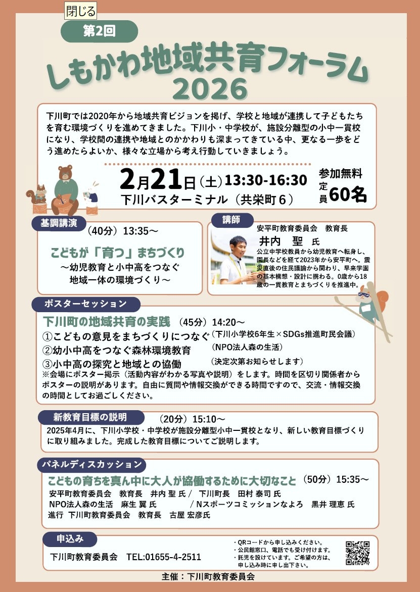 2/21 第2回しもかわ地域共育フォーラムを開催します