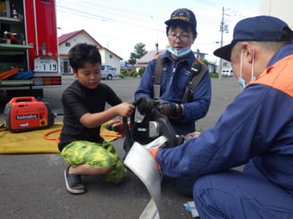 現在位置: トップページ 各課のページ 消防署 下川少年消防クラブ 夏期研修 印刷する 下川少年消防クラブ 夏期研修 作成日:2025年07月03日最終更新日:2025年11月15日 令和7年6月28日 下川少年消防クラブ 夏期研修 今年度の夏期研修は、消防車両に積載している装備品を実際に手に取り、体験しました。 普段はなかなか触れることのできない専門的な機材に触れ、消防活動への理解を深める貴重な時間となりました。 メニュー 各課のページ 各課のページトップ 総務企画課 町民生活課 保健福祉課 産業振興課 農業委員会 教育委員会 教育課 出納室 議会事務局 監査委員事務局 町立下川病院 消防署 特別養護老人ホーム あけぼの園 山びこ学園 下川小学校・下川中学校 下川町議会 行政情報 洪水ハザードマップ リンク集