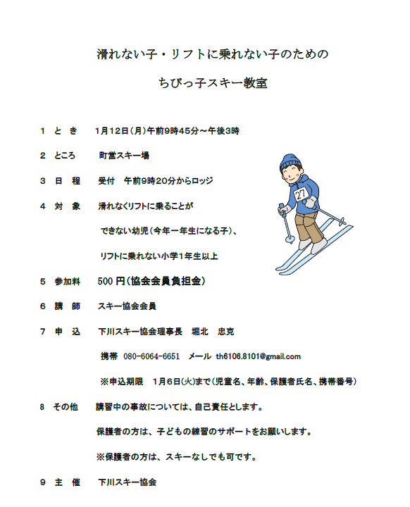 滑れない子・リフトに乗れない子のためのちびっ子スキー教室開催について