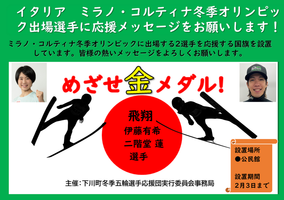 2月に開催されるミラノ・コルティナ五輪冬季五輪スキージャンプ競技に選出された選手への寄せ書きを公民館に設置しています。