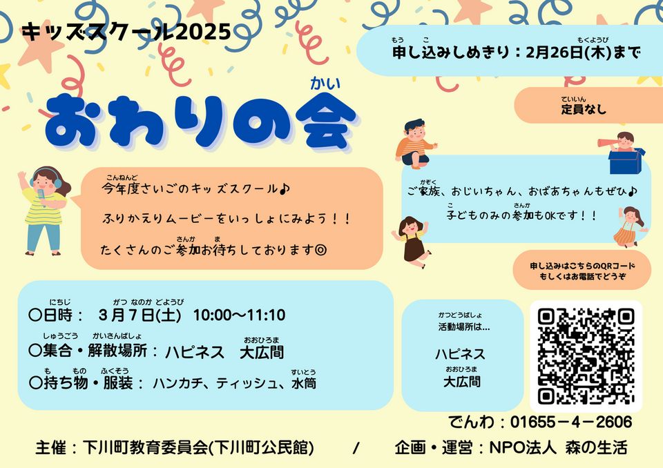 3月7日(土)・3月16日(月)にキッズスクールを開催いたします。