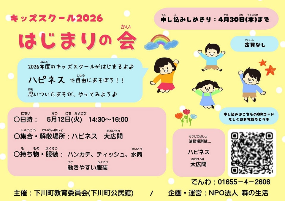 5月12日(火)・5月19日(火)・5月26日(火)・にキッズスクールを開催いたします。