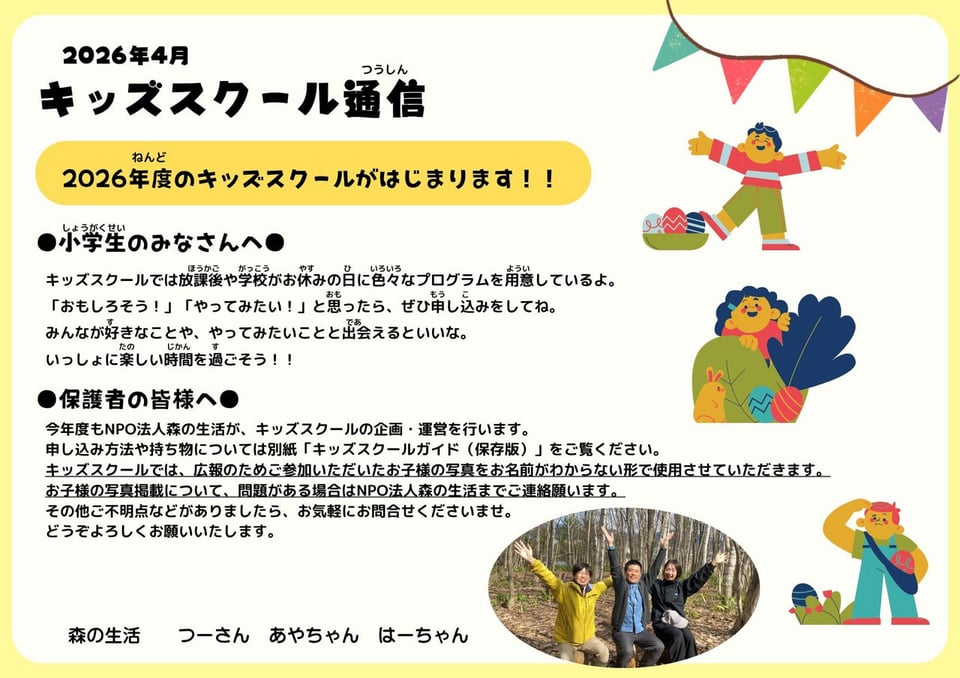 キッズスクール通信を公開・キッズスクールを開催いたします。